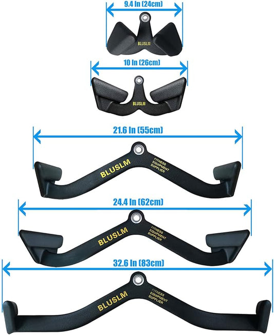 LAT Pulldown Attachments, Black Steel LAT Bar Cable Attachments Handles, Home Gym Cable Machine Accessories, Tricep Rope, Rowing LAT Pull Down Bar, Straight Bar, Double D Handles, Exercise Handles