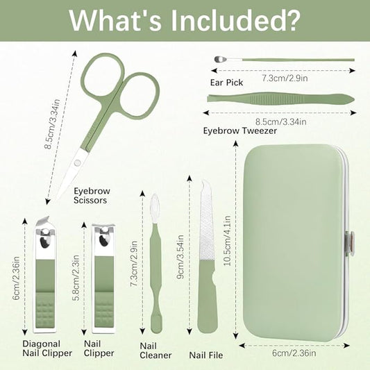 Manicure Set, Stainless Steel Nail Clipper Kit Nail Clipper Set 7 in 1 Manicure Kit Pedicure Kit Portable Nail Grooming Kit Fingernail Toenail Clippers for Men Husband Boyfriend Women Green