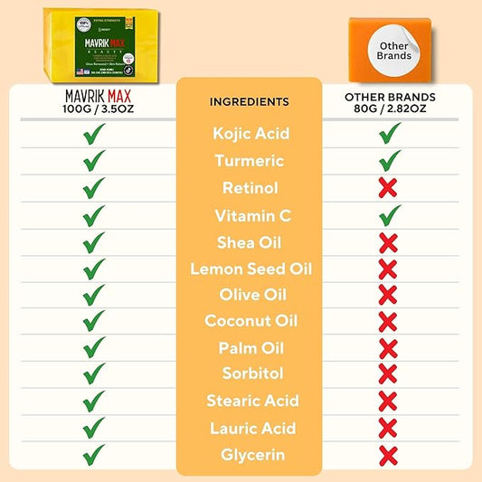 Mavrik Max Beauty Turmeric & Kojic Acid Dark Spots Fading Bar, Extra Strength Formula with Retinol, Vitamin C, Shea Oil, USA Made