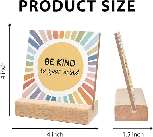 Mental Health Inspirational Gift, Colorful Positive Affirmations Wood Sign with Wooden Stand, Colorful Mental Health Wood Sign, Cheer Up Gifts for Psychologist School Counselor Student Boy Girl