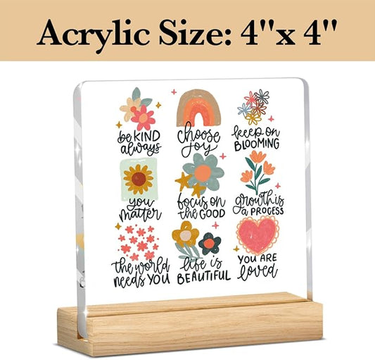 Mental Health Decor, Motivational Gifts for Women Men, Boho Floral Inspirational Acrylic sign with Wooden office Accessories Bedroom Dorm Apartment Decoration-Words Matter Speak Kindness