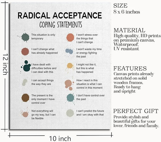 Mental Health Décor, Mental Health Wall Art, Mental Health Posters, School Counselor Supplies, Canvas Wall Art, DBT Poster, Therapist Office Decor, Radical Acceptance Canvas Poster 10x12 inch