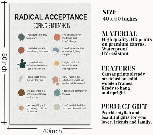 Mental Health Décor, Mental Health Posters, School Counselor Supplies, Canvas Wall Art, DBT Poster, Therapist Office Decor, Radical Acceptance Canvas Poster 14x17 inch