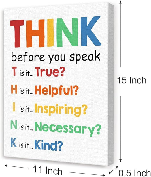 Mental Health Wall Decor,Think Before You Speak Wall Art,Therapy Office Wall Decor,Inspirational Canvas Wall Art for Classroom Counseling Office Homeschool