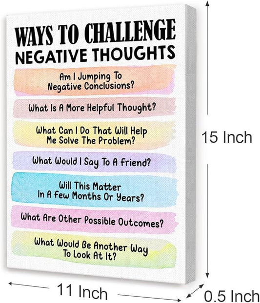 Mental Health Wall Decor,Challenge Negative Thoughts Wall Art,Therapy Office Wall Decor,Inspirational Canvas Wall Art for Classroom Psychologist Office Home