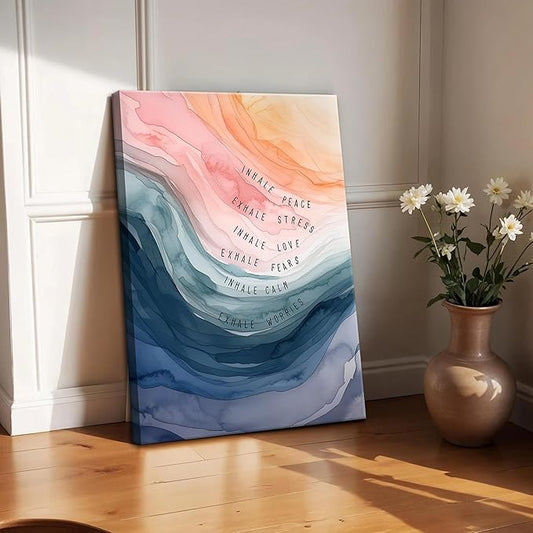 Mental Health Wall Art, Therapy Office Pictures Wall Decor, Inhale Exhale Meditation Art Paintings, Inspirational Canvas Prints, Therapist Artwork for Meditation Room Calming Corner, Framed 16x24 Inch