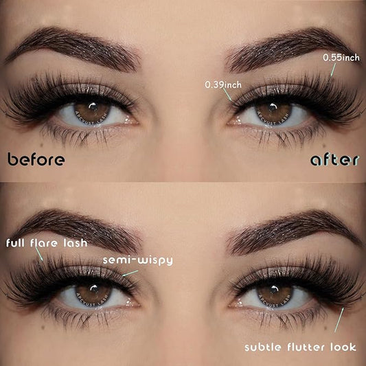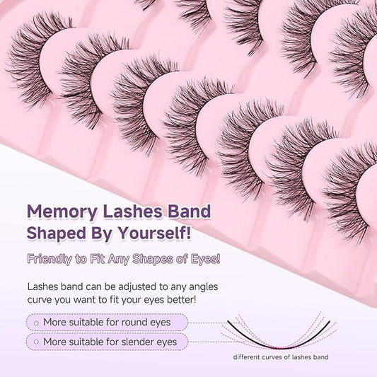 Natural Cat Eye Lashes, 13mm Wispy, Thin Memory Band, Volume, Soft Strip Lashes, Pack of 7