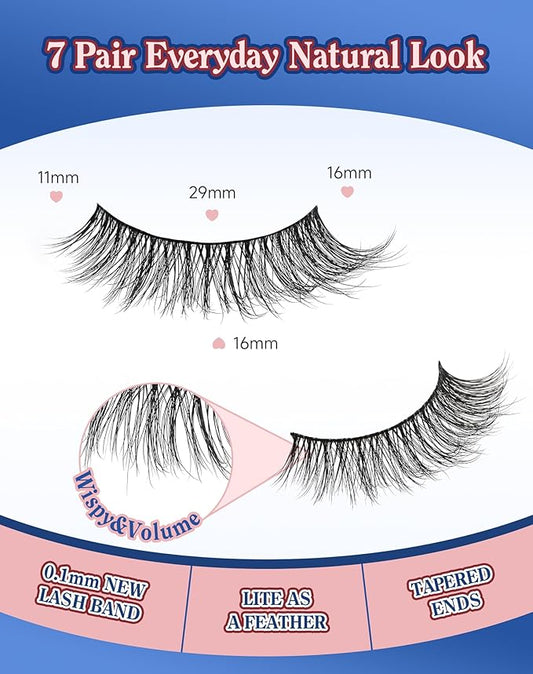 Natural Everyday Wispy Lashes False Eyelashes Natural Look Natural Flared Eyelashes False Eye Lashes Soft Fluffy Lashes 7 Pairs