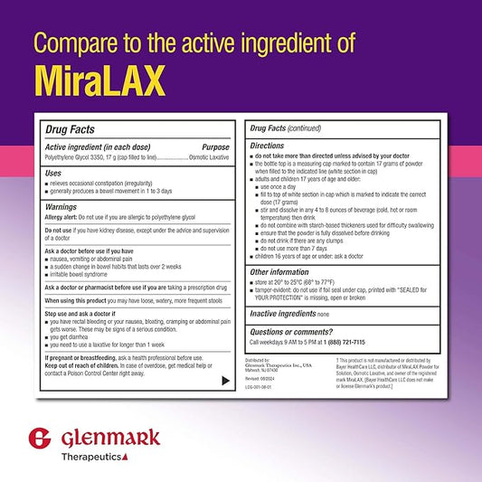 Polyethylene Glycol 3350 Powder, Osmotic Laxative, 45 Daily Doses, Softens Stool, Relieves Occasional Constipation, Powder for Solution, 26.9 Ounce