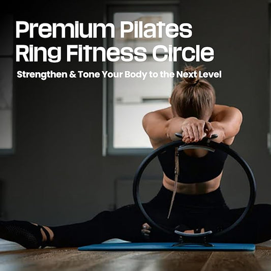 Premium Pilates Ring Fitness Circle - Lightweight Durable Foam Padded Handles, Flexible Resistance Exercise Equipment for Toning Arms, Thighs, Legs & Core