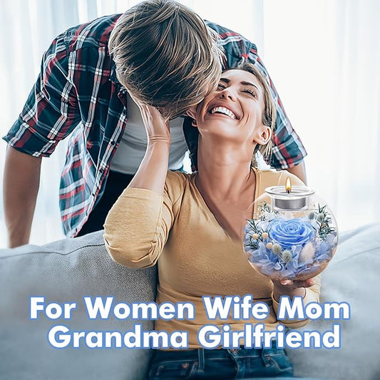 Preserved Roses - Birthday Gifts for Her, Preserved Flower in Glass Dome with Scented, Romantic Gifts for Women, Wife, Girlfriend on Birthday, Anniversary, Thanksgiving Day, Christmas Day-blue