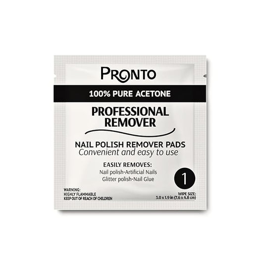 Pronto Acetone Nail Polish Remover Pads, 10 Pcs. Individually Wrapped Acetone Wipes, Pure Acetone Wipes Remover For Salon & Home - Quick Polish Nail Soak Pads