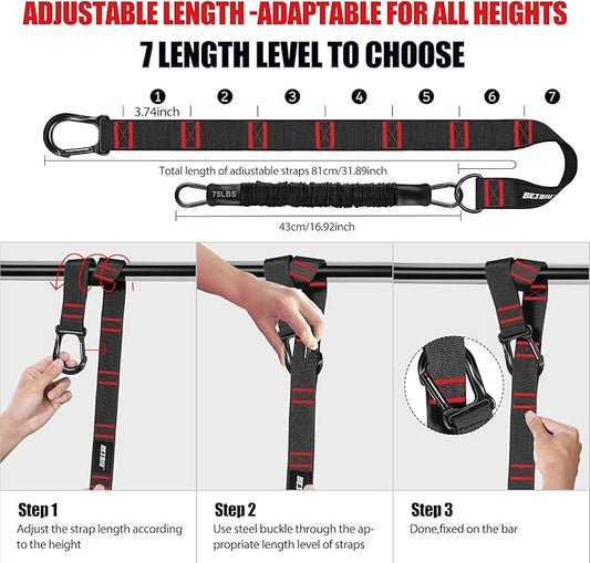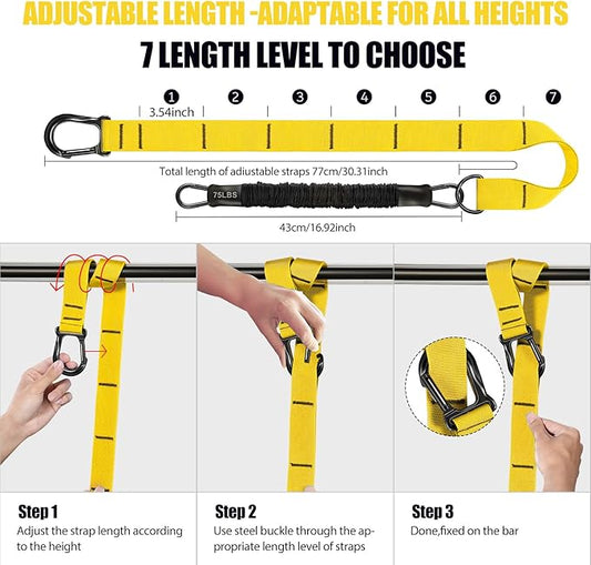 Pull Up Assistance Bands Set with Adjustable Resistance Band Bar, Heavy Duty Pull-Up Assist Band System for Chin Up, Strength Training, Home Gym Workout, Fabric Foot/Knee Rest Included