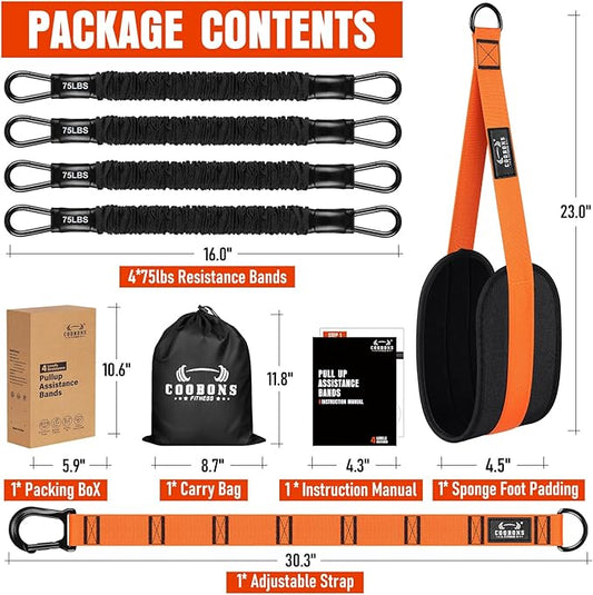 Pull Up Assistance Bands Set, Heavy Duty Adjustable Pull Up Assist Band with Feet Rest, Strength Training Bands for Home Gym Fitness, Pull-Up Bar, Calisthenics and Body Stretching
