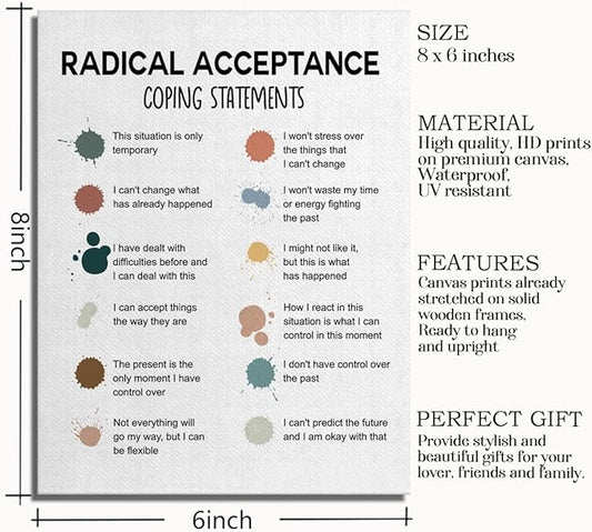 Radical Acceptance Canvas Wall Art - Mental Health Posters & DBT Poster - Therapist Office Decor 8x10 inch