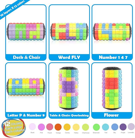 R.Y.TOYS Rotate and Slide Puzzle-Design Patent,Fidget Toys(Restore/Create)-12 Colors,5 Layers-Open Cover for Quick Play,Brain Teaser,Sensory Toys,Stocking Stuffers,Easter Basket Stuffers Essentials