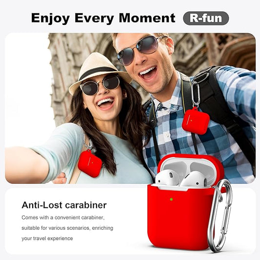 R-fun Compatible with AirPods Case Cover, Soft Silicone Protective Cover with Keychain for Women Men Compatible with Apple AirPods 2nd 1st Generation Charging Case, Front LED Visible,Red