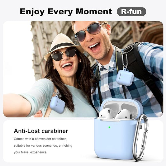 R-fun Compatible with AirPods Case Cover, Soft Silicone Protective Cover with Keychain for Women Men Compatible with Apple AirPods 2nd 1st Generation Charging Case, Front LED Visible,Sky Blue