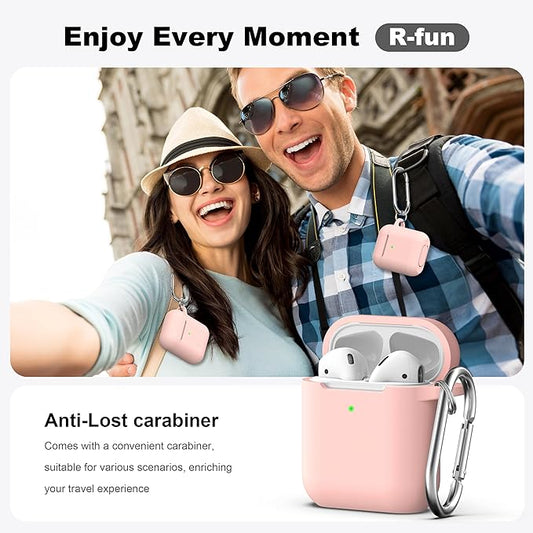 R-fun Compatible with AirPods Case Cover, Soft Silicone Protective Cover with Keychain for Women Men Compatible with Apple AirPods 2nd 1st Generation Charging Case, Front LED Visible,Rose Pink