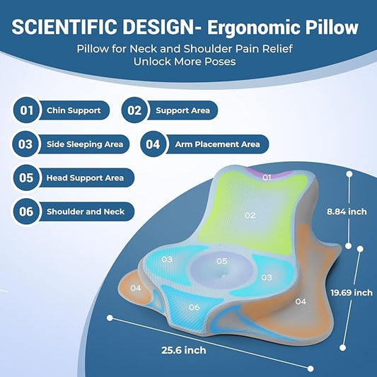 Reading Pillow for Bed, Lying, Leaning and Prone, Ergonomic Memory Foam Bed Wedge Pillow for Headboard, Chin & Back Support Pillows on Bedrest Couch Floor- Blue