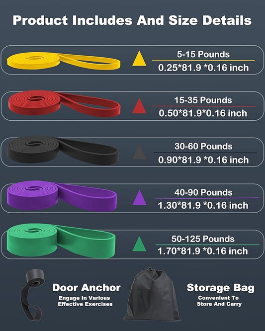 Resistance Bands Set - Pull Up Bands for Men Women, Exercise Bands Resistance with Door Anchor, Training Poster & Pouch for Body Stretching, Pull Up Assist