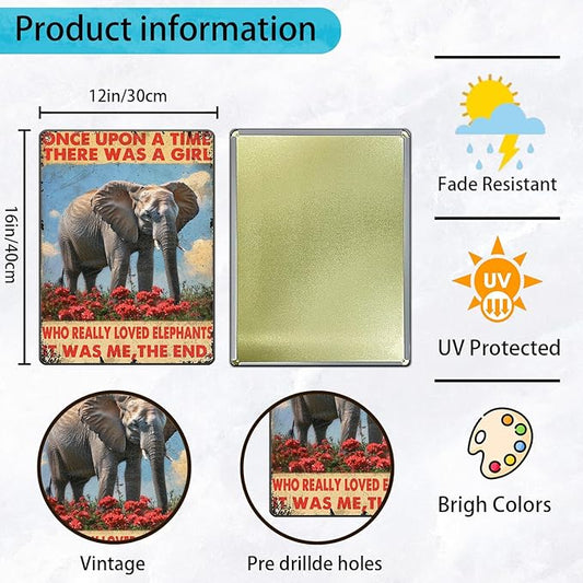 Retro Elephants Metal Poster There Was A Girl Who Really Loved Elephants Metal Tin Signs Vintage Plaque Wall Decor Gift For Home Kitchen Office Men Cave Club Bar 12x16 Inch
