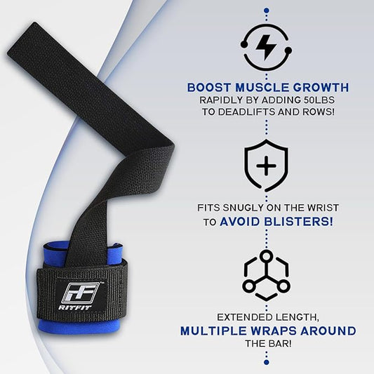RitFit Lifting Wraps, Wrist Straps for Weightlifting, Wrist Support for Working Out, Bodybuilding, MMA, Powerlifting, Strength Training, Men & Women