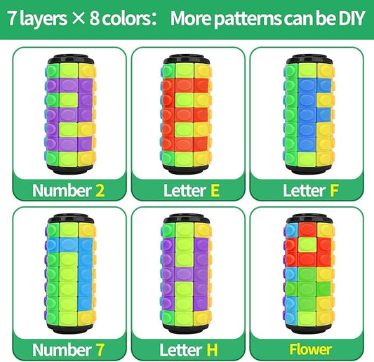 Rotate and Slide Puzzle, Finger Spinner Puzzle, Fidget Toys, Decompression Toy, 8 Colors,7 Layers, Educational Sensory Toy for Kids Adults (8 Colors X (6 Layers + 4 Layers + 8 Layers))