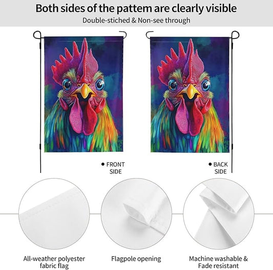 Rooster Garden Flag 12x18 In Double Sided Yard Flags Lawn Sign Decor No Flagstand