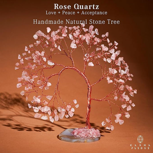 Rose Quartz Healing Crystal Tree of Life for Home and Office Decor, Positive Energy, Wealth, Good Luck, Reiki Healing Crystals and Stones, Handmade Feng Shui Decoration, Birthday Gifts for Women