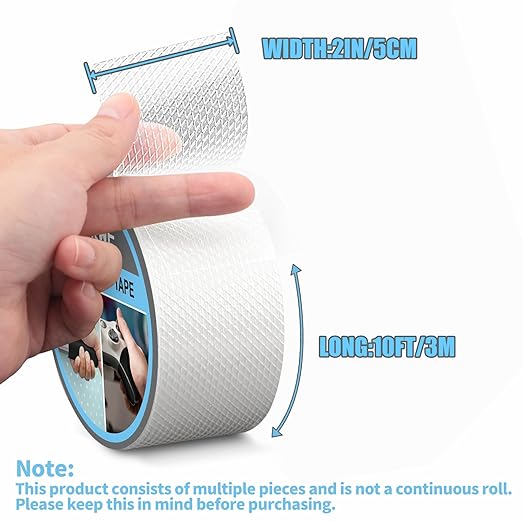 Rubber Grip Tape, Ultra-Thin Strong Adhesive Anti-Slip Waterproof Heat Resistant Wear-Resistant Cushion Pad, Making Handles or Contact Surfaces Safer, with Grip and Comfort (Clear, 2In x 10Ft)