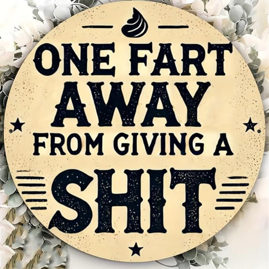 Rustic Metal Sign "One Fart Away from Giving a Shit" 7.8x7.8 inches, Iron Humorous Wall Art, Vintage Style, Indoor/Outdoor Decor for Home, Farmhouse, Bar, Shop, Restaurant, Garden