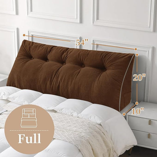 Sasttie Headboard Pillow Full, Wedge Pillow Headboard for Sitting Up in Bed, Back-Rest Support Triangular Cushion for Reading - Features Removable Washable Cover, Brown