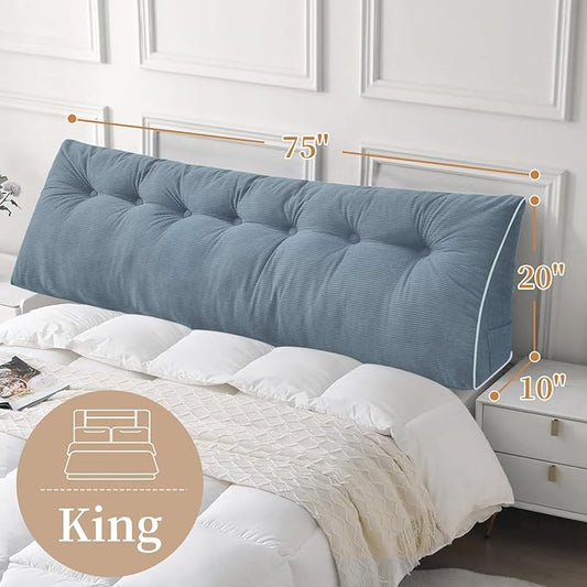 Sasttie Headboard Pillow King, Wedge Pillow Headboard for Sitting Up in Bed, Back-Rest Support Triangular Cushion for Reading - Features Removable Washable Cover, Greyish Blue