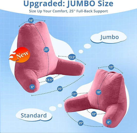 Sasttie 25-inch Reading Pillows for Sitting in Bed Adult, Jumbo Velvet Back Pillow Bed Sitting Up, XL High Back-Rest Support Cushion for Sit Up on Couch & Floor, Oeko-Tex Certified, Pink