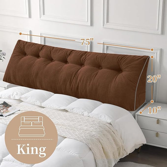 Sasttie Headboard Pillow King, Wedge Pillow Headboard for Sitting Up in Bed, Back-Rest Support Triangular Cushion for Reading - Features Removable Washable Cover, Brown