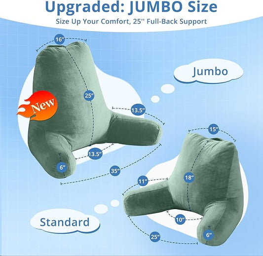 Sasttie 25-inch Reading Pillows for Sitting in Bed Adult, Jumbo Velvet Back Pillow Bed Sitting Up, XL High Back-Rest Support Cushion for Sit Up on Couch & Floor, Oeko-Tex Certified, Green