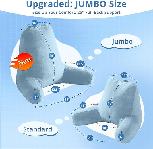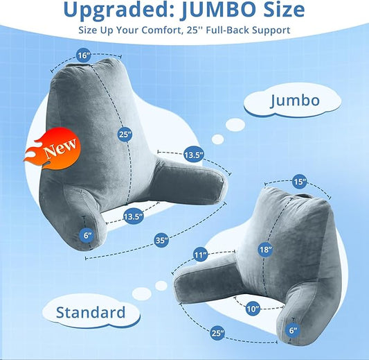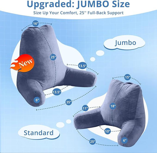 Sasttie 25-inch Reading Pillows for Sitting in Bed Adult, Jumbo Velvet Back Pillow Bed Sitting Up, XL High Back-Rest Support Cushion for Sit Up on Couch & Floor, Oeko-Tex Certified, Bluish Grey