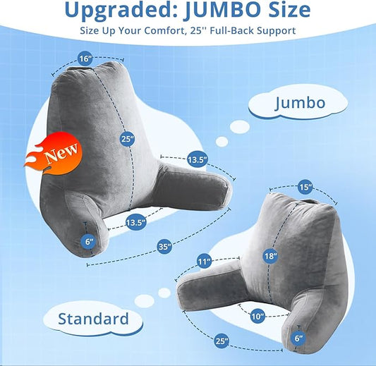 Sasttie 25-inch Reading Pillows for Sitting in Bed Adult, Jumbo Velvet Back Pillow Bed Sitting Up, XL High Back-Rest Support Cushion for Sit Up on Couch & Floor, Oeko-Tex Certified, Dark Grey