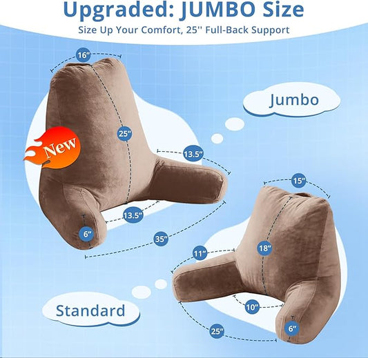 Sasttie 25-inch Reading Pillows for Sitting in Bed Adult, Jumbo Velvet Back Pillow Bed Sitting Up, XL High Back-Rest Support Cushion for Sit Up on Couch & Floor, Oeko-Tex Certified, Light Brown