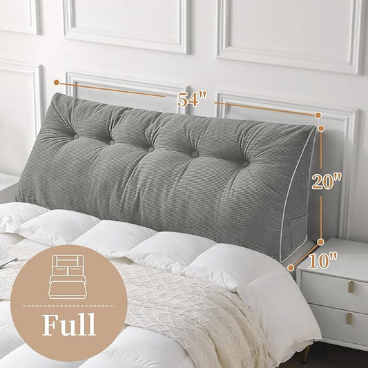 Sasttie Headboard Pillow Full, Wedge Pillow Headboard for Sitting Up in Bed, Back-Rest Support Triangular Cushion for Reading - Features Removable Washable Cover, Light Grey