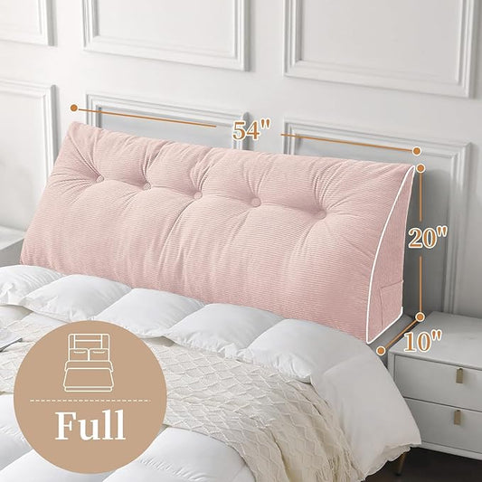 Sasttie Headboard Pillow Full, Wedge Pillow Headboard for Sitting Up in Bed, Back-Rest Support Triangular Cushion for Reading - Features Removable Washable Cover, Pink