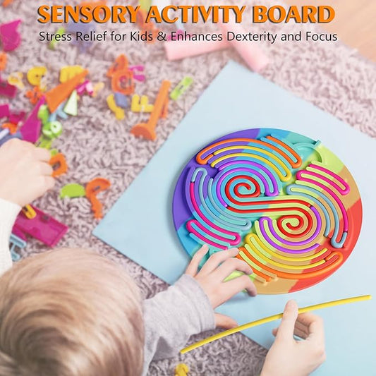 Sensory Activity Board, Silicone Fidget Toy for Stress Relief, Calming, Focus, ADHD and Autism, 6 Colors Sensory Toys Game Controller for Kids 2+ & Adults with 20 Strings