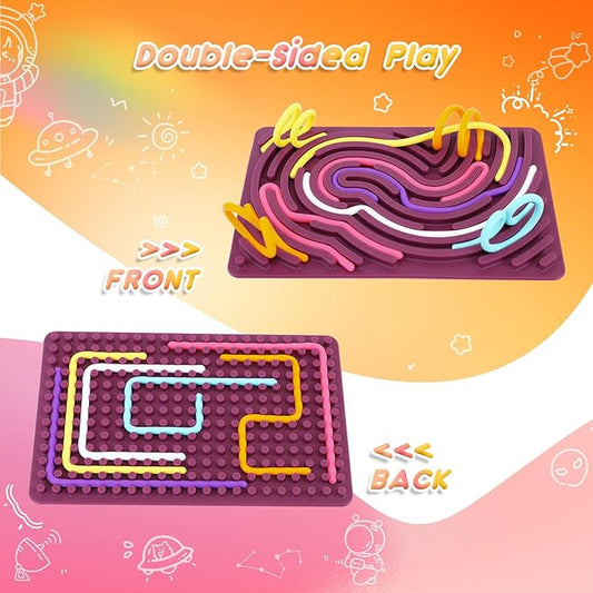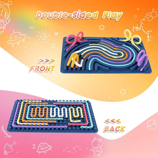Sensory Activity Board: Ednzion Double-Sided Silicone Fidget Toy for Kids & Adults | Silent, No Mess, Calming for Anxiety, ADHD & Autism | Portable with Travel Bag & 20 Strings | Ages 3+