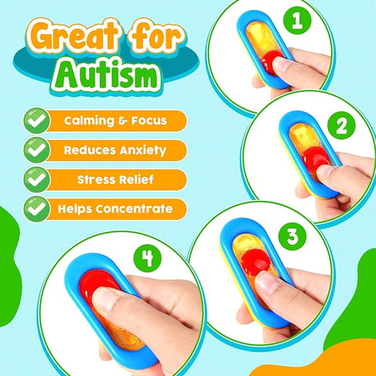 Sensory Marble Fidget Toys for Kids- 6 Pcs Quiet Fidget for Classroom, Gel Filled Autism Sensory Toys ADHD, Silent Stress Fidgets Squishy Worry Stones, Travel Road Trip Activities for Kids Gifts