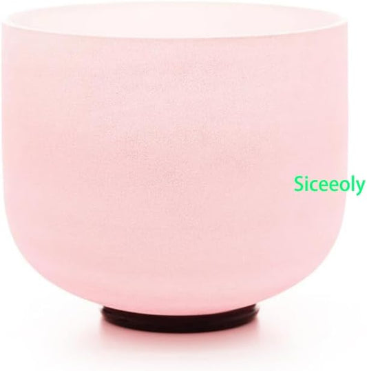 Set of 3 Pink Color Singing Bowls 8"G 10"E 12"C Frosted Chakra Quartz Sound Healing Crystal Singing Bowl with Travel Carry Case Bag Mallet Suede Striker O-ring