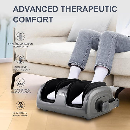 Shiatsu Foot Massager with Heat,Vibration,Air Compression and Deep Kneading for Plantar Fasciitis, Neuropathy,Improve Foot Wellness,Gifts for Women & Men(Silver)