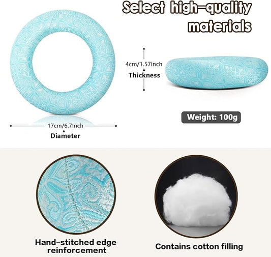 Singing Bowl Cushion for Tibetan Singing Bowls, Handmade Silk Brocade Round Cushion Pillow for Sound Healing and Crystal Sound Bowls Accessories(CyanBlue,6.7 Inch)