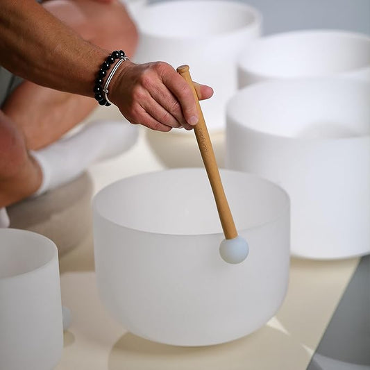 TOPFUND 12" Crystal Singing Bowl Mallet - Silicone Head & Raw Beech Handle | Precision-Crafted for Pure Sound