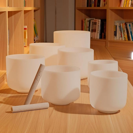 TOPFUND 6-10" Chakra Set of 7 Crystal Singing Bowls with Carrying Cases and Singing Bowl Mallets